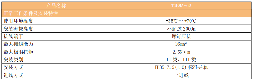 TGBMA-63 单磁式断路器 ( 以下简称断路器 ) 主要适用于交流 50Hz/60Hz,额定电流1A至63A,额定电压230V或400V的配电网络中。适用于医疗IT配电系统、电机保护及建筑消防系统等领域的低压终端配电,作为短路保护开关,也可与热继电器或电机启动器配合使用,实现过载保护。